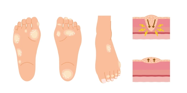 - 足部角質增厚(繭)、雞眼,伴隨行走疼痛,反覆發作;